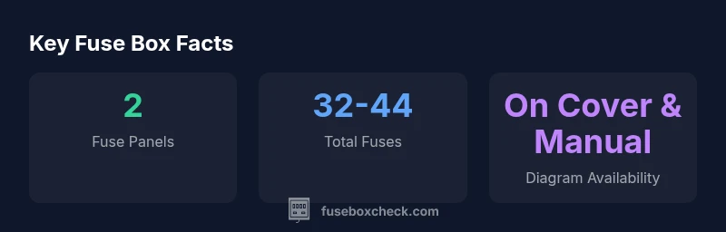 There are two main fuse panels: one in the engine bay and one inside the vehicle, typically behind the glove box or under a dash panel. The exact layout is shown on the covers and in the owner's manual.