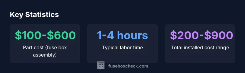 Prices for a car fuse box replacement vary primarily by the part type and the vehicle. A basic under-hood fuse box assembly can be significantly cheaper than a fully integrated unit found in newer models. OEM (original equipment manufacturer) parts typically carry higher upfront costs than aftermarket equivalents, but they may offer better compatibility and warranties. Labor costs depend on accessibility; situated behind dashboards or inside engine compartments increases time and risk, raising the price. According to FuseBoxCheck Analysis, 2026 price ranges reflect typical installations across common passenger cars, but exotic or luxury vehicles can push totals higher due to specialized parts or the need for dealer service. When budgeting, consider core factors: part price, labor rate, and whether any reprogramming or diagnostic work is required.