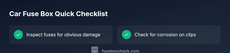 According to FuseBoxCheck, most car fuse box problems begin with a few clear indicators and escalate quickly if ignored. You’ll notice warning lights, intermittent power to accessories, or a sudden loss of function in a single circuit. A blown fuse is often the first clue, but it can also signal a deteriorating connector, corroded terminal, or a damaged bus bar inside the box. The key is to approach the car's electrical system with a plan: verify power, identify the exact circuit involved, and confirm whether the fault is isolated to a fuse or indicative of broader wiring issues. In this guide we’ll outline practical checks you can perform safely and describe when a pro should step in to prevent fire risk or further damage. The goal is to help you tell if fuse box is bad in car and decide the fastest, safest path to a fix.