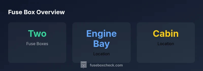 This vehicle typically has two fuse boxes: one in the engine bay and another inside the cabin. Exact layout can vary by trim, so always confirm with the diagram for your model.