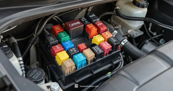 The engine bay fuse box is typically located in the engine compartment near the battery or radiator support. Always use the diagram on the cover to identify the exact fuse positions for your model year.