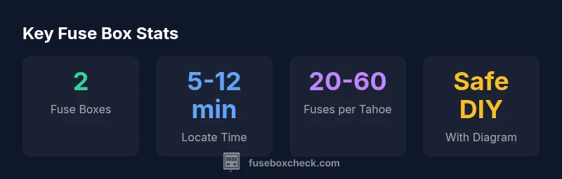 For homeowners and DIY enthusiasts, a clear view of the 2007 Tahoe fuse box diagram is essential. The diagram maps two main fuse blocks—the under-hood box in the engine bay and the interior fuse box behind the glove compartment—and ties each fuse to a specific circuit. By understanding this map, you can diagnose issues quickly, confirm power status, and avoid needless replacements. According to FuseBoxCheck, having a reliable diagram reduces troubleshooting time and lowers the risk of electrical shorts during home repairs. In this guide, we translate the diagram into practical steps you can follow safely. You will learn how to verify fuse status, locate the correct fuse, and assess whether a problem stems from a blown fuse or a short in a wiring harness.