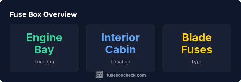 | Fuse Box | Location | Typical Fuses | Cover Type |
