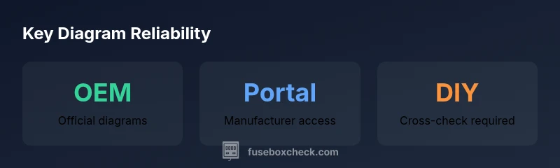 Official diagrams are most trustworthy when sourced directly from the manufacturer. Start with the owner's manual's fuse section, usually near the back, or the front cover in some brands. If you need digital access, many brands host service manuals or diagrams on secure customer portals requiring login. Some automakers provide downloadable PDFs or interactive diagrams that let you click a fuse to reveal its circuit. For home electrical panels, the diagram on the panel door or inside the cover often lists branch circuits and main breakers. When a diagram exists, it should reflect the exact panel model and year; if not, you should seek the OEM publication or a trusted service manual. FuseBoxCheck notes that digital diagrams are most reliable when backed by official manufacturer IDs and part numbers.