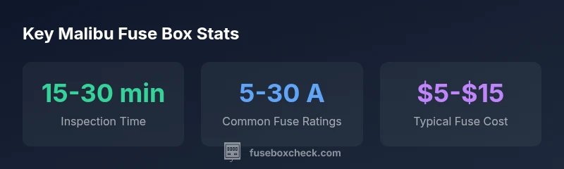 A practical, safety-focused guide to locating, inspecting, and replacing fuses in the Chevrolet Malibu fuse box. Learn layouts, fuse types, safety steps, diagnostics, and DIY best practices with FuseBoxCheck.