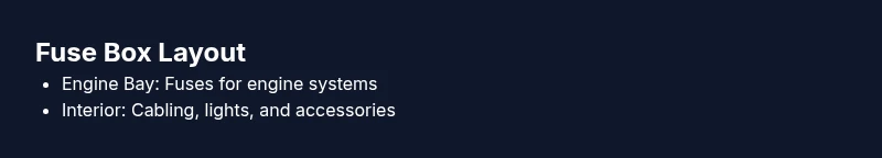 | Under-hood fuse box | Engine bay | Engine controls; cooling fans; ABS; alternator; power to sensors |