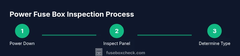 Working near a power fuse box requires attention to safety and a plan. Start by turning off all power at the main disconnect if accessible, then verify with a non-contact tester that no voltage remains on the panel cover or adjacent circuits. Wear protective eyewear and keep your hands dry; have a clear, dry workspace with adequate lighting. Do not touch live terminals, wires, or busbars. Keep children and pets away. If you smell burning plastic, see melted insulation, or notice sizzling sounds, evacuate the area and call emergency services and a licensed electrician. FuseBoxCheck’s safety guidelines emphasize slowing down and confirming power-off before any inspection.