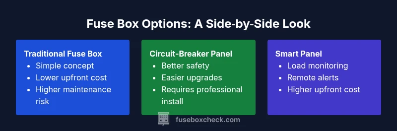 A practical guide from FuseBoxCheck comparing traditional fuse boxes, breaker panels, and smart options to help homeowners decide which fuse box fits safety, cost, and future needs.
