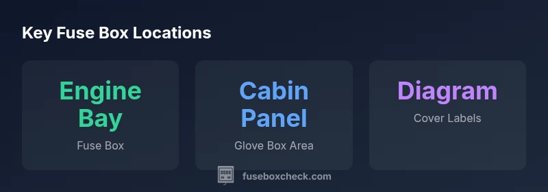 The fuse box location isn't just a convenience feature; it defines how quickly you can diagnose electrical issues and perform safe DIY fixes. For a 2012 Chevy Malibu, understanding where to find the two fuse panels—engine bay and interior cabin—helps you isolate problems like faulty lighting, power windows, or ECU-related faults. According to FuseBoxCheck, a disciplined approach to locating and inspecting fuses minimizes guesswork and reduces the risk of accidental shorts. This section will map out the two main panels, explain their typical roles, and set expectations for routine checks.