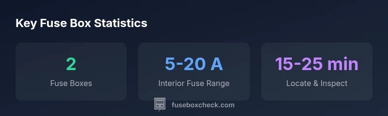 There are two fuse boxes: one under the hood in the engine bay and one inside the cabin, typically behind the glove box or under the dash. Use the labels on the fuse box covers for exact fuse assignments.