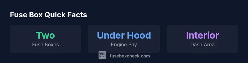 There are two fuse boxes: under-hood in the engine bay and interior behind the left dash near the steering column. Both have diagrams on their covers to help identify circuits.