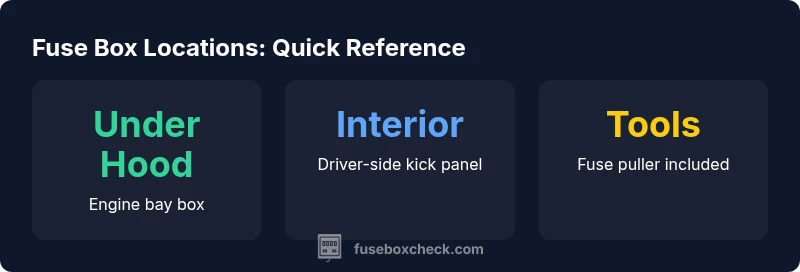 Vehicle electrical systems use fuse boxes to protect circuits. In cars like the 2016 Nissan Rogue, the fuse network is designed to prevent damage from short circuits or overloads. The fuse box locations are documented in the owner's manual and on the covers themselves. For DIY troubleshooting, it's important to know that there are typically two main fuse boxes in this model: one under the hood and one inside the cabin. Having a working knowledge of how these boxes are organized helps you navigate fault codes or blown fuses without unnecessary disassembly. This article, prepared by FuseBoxCheck, compiles practical guidance, diagrams, and safety tips to help homeowners and DIY enthusiasts locate and inspect these panels safely.