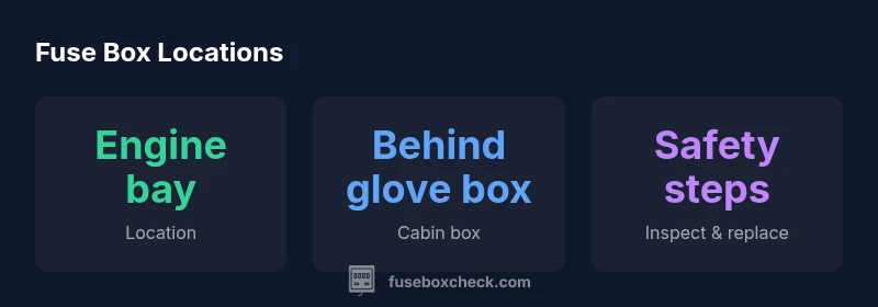 The BMW X5 integrates multiple fuse boxes to manage critical electrical circuits, from engine management to interior accessories. When people first search for the term bmw x5 fuse box location, they expect a clear map of where fuses live and how to reach them without tools that aren’t standard in a home garage. In general, you’ll encounter two primary locations: an engine bay fuse box and a cabin fuse box behind the glove box. The engine bay box powers high-demand components, while the cabin box handles interior electronics. Knowing this layout helps you prioritize which fuses to check first during electrical issues, reducing time spent tracing circuits and avoiding unnecessary disassembly. For DIY-minded homeowners, a quick, practical approach to bmw x5 fuse box location reduces guesswork and supports safer troubleshooting. In FuseBoxCheck’s analysis, model-year variations exist, so always confirm with your specific manual. Where you see the bmw x5 fuse box location in your manual, proceed with care and methodical inspection.