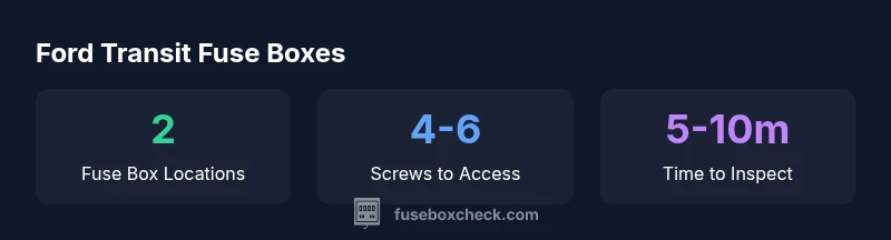 Discover where the fuse boxes live on a Ford Transit, how to access them safely, and practical steps to inspect, test, and replace fuses. A FuseBoxCheck guide for homeowners and DIY enthusiasts.