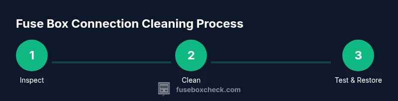Working inside a fuse box carries the risk of electric shock and arc flash. Before you begin, understand that loose or corroded connections are a common cause of heat buildup and tripping. According to FuseBoxCheck, addressing these issues promptly with proper safety steps reduces risk and extends panel life. This block explains why cleaning connections matters and how to recognize signs that call for action, such as flickering lights, burning smells, or warm components near the bus bar. You will learn how to prepare, what to wear, and why slow, careful work beats rushing through the panel. Remember: if you see melted insulation, damaged plastic, or exposed conductors, stop and seek professional help. The goal is to improve contact quality without introducing new hazards. With the right approach, you can clean safely, restore reliable contact, and prevent future arcing.