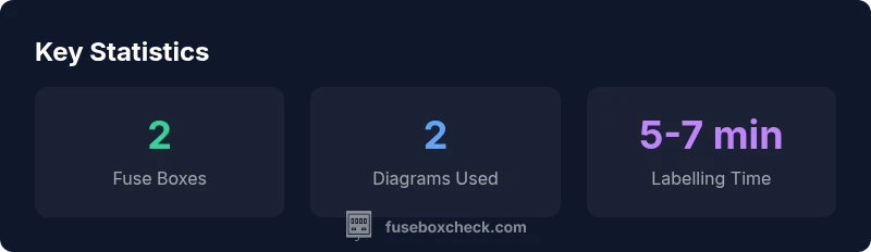 Always power down the vehicle and disconnect the battery before working on the fuse boxes. Use insulated tools and wear eye protection to prevent arc flash or sparks. Replace fuses with the exact amperage rating and type (solid vs. slow-blow) specified for the circuit. Keep a clean diagram on hand for quick reference, and store spare fuses in a dedicated container. If you’re unsure, consult a qualified technician. FuseBoxCheck emphasizes that safety and validation against the correct diagram are essential.