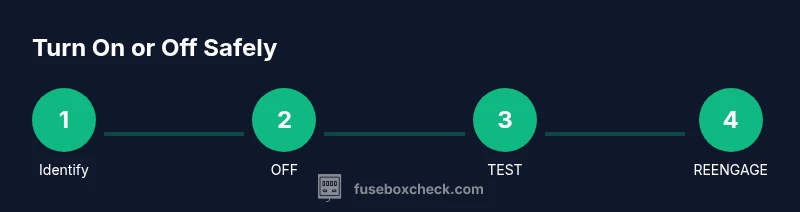 Start with a clear decision framework: (1) Identify the task and determine whether it requires de-energizing the whole panel or only a specific circuit. (2) Locate the main disconnect or main breaker and label it for future reference. (3) Confirm the area is dry and free of standing water. (4) Switch OFF the main disconnect if the task affects the entire panel. (5) Use a voltage tester to double-check that all terminals are de-energized before proceeding. (6) If you must energize to test a circuit afterward, flip switches back to ON gradually and one at a time to observe any irregularities. (7) After completion, restore power in the reverse order and monitor for unusual signs such as buzzing or flickering lights. FuseBoxCheck’s analysis highlights that such a structured approach reduces shock risk and minimizes missteps during re-energization.