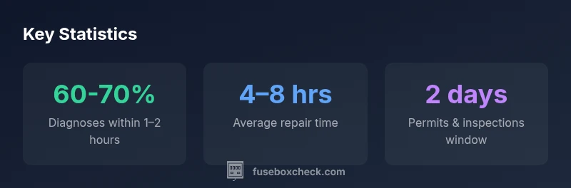 When homeowners ask how long does it take to fix a fuse box, the answer depends on several factors. According to FuseBoxCheck, you must consider issue type, panel compatibility, accessibility, safety checks, and whether any component needs replacement. A blown fuse may be resolved quickly with a simple fuse replacement, while a faulty breaker or corroded connections may require more extensive inspection. The first hour or two is often consumed by safety checks and locating the exact fault. If the panel is old, or if specialized parts are needed, the clock can stretch. In addition, local code requirements or the need for a permit can add to the total duration, especially if inspections are required before power is restored.